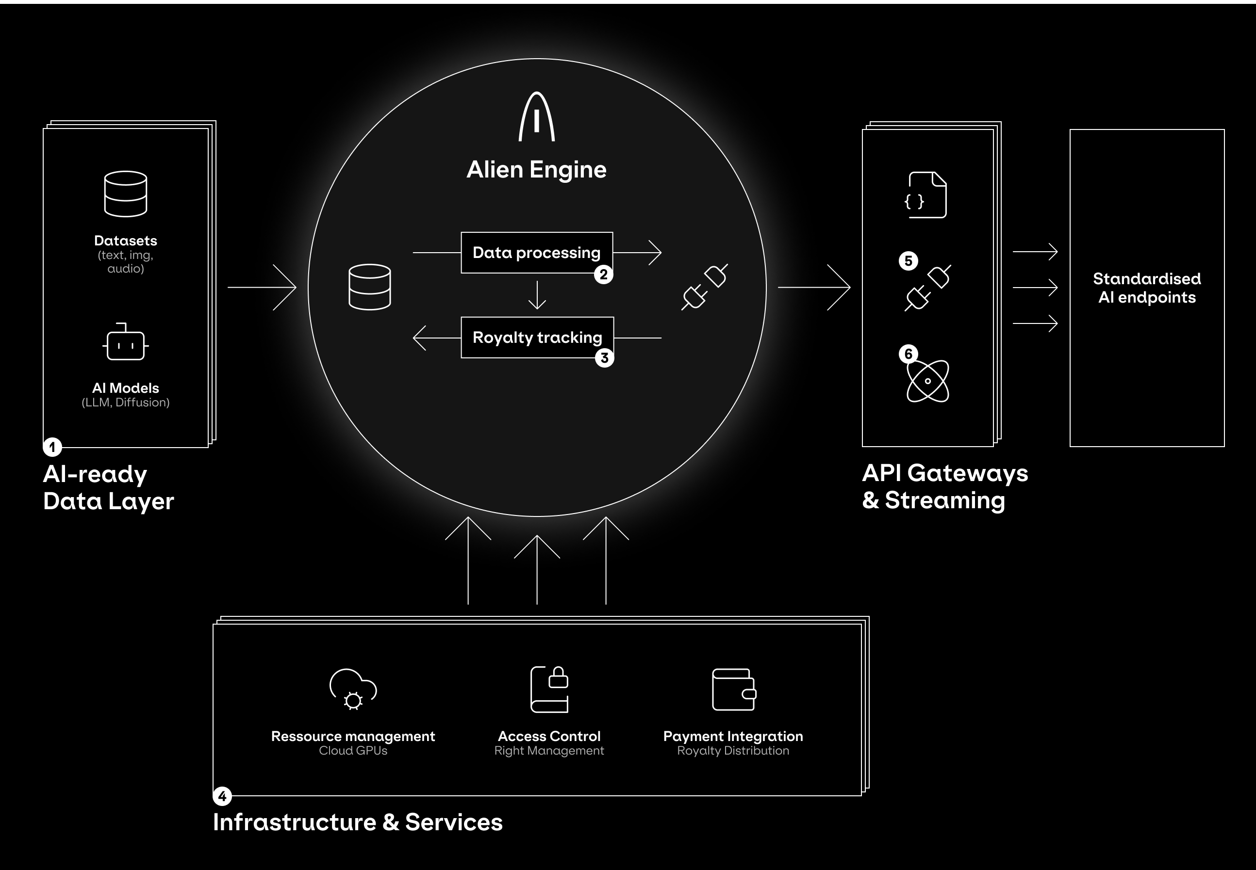 Standardized AI endpoints to consume the data. It is streamed in real time to any AI service, agent, or application that needs it