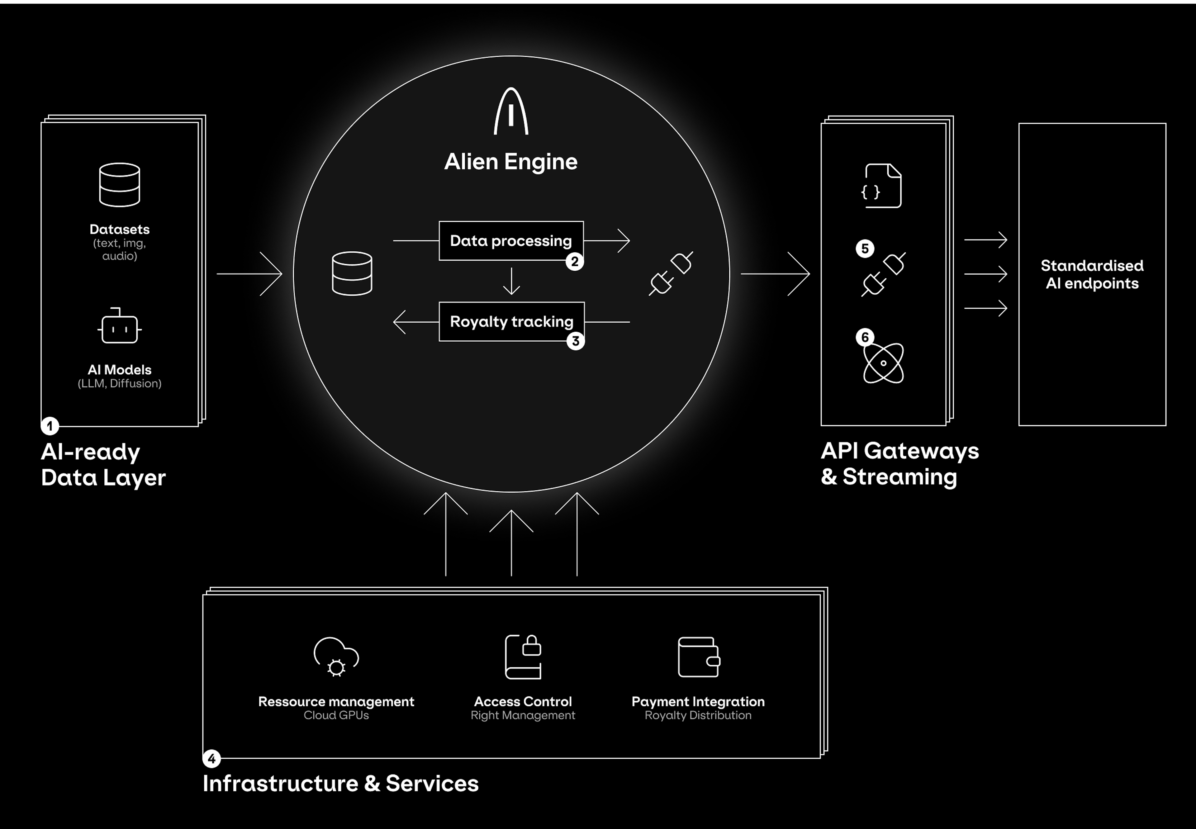 Standardized AI endpoints to consume the data. It is streamed in real time to any AI service, agent, or application that needs it